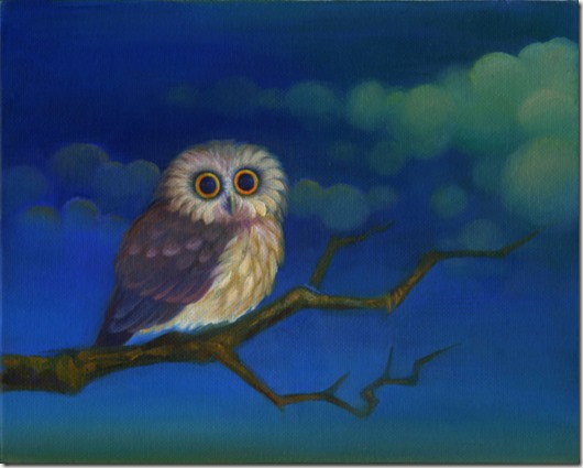 Back in October Daniel would go around the house saying “I love owls, and owls love me.” I thought it was really cute and decided to paint an owl for him. I got this far: